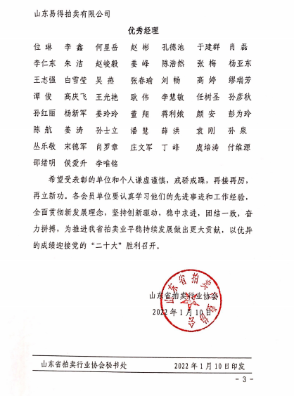 下一篇:關于公布山東省拍賣行業協會第五屆領導機構組成人員名單的通知